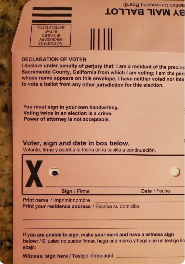 流言起源于2025年10月9日在X平台账号@WallStreetApes上的一则帖子,配有选票信封的照片。帖子主张,如果在选票上勾选“反对”Prop 50,并按照某种方式折叠放进邮寄信封,投票人选将会“透出”信封上的孔洞,因此容易给民主党“甄别”并丢弃此类选票,并称11月的特别选举会被“作弊”。