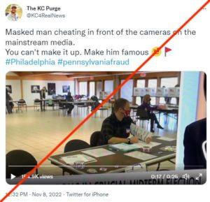 经核查,推特疯传的声称“宾州有投票站工作人员镜头前作弊”是假的。
