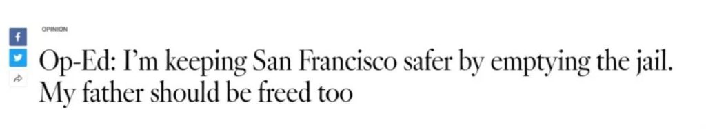 右翼文章指控,博彻思甚至还在洛杉矶时报上发表文章,题目是“我清空监狱令旧金山更安全,我的父亲也应该被从监狱里放出来”。