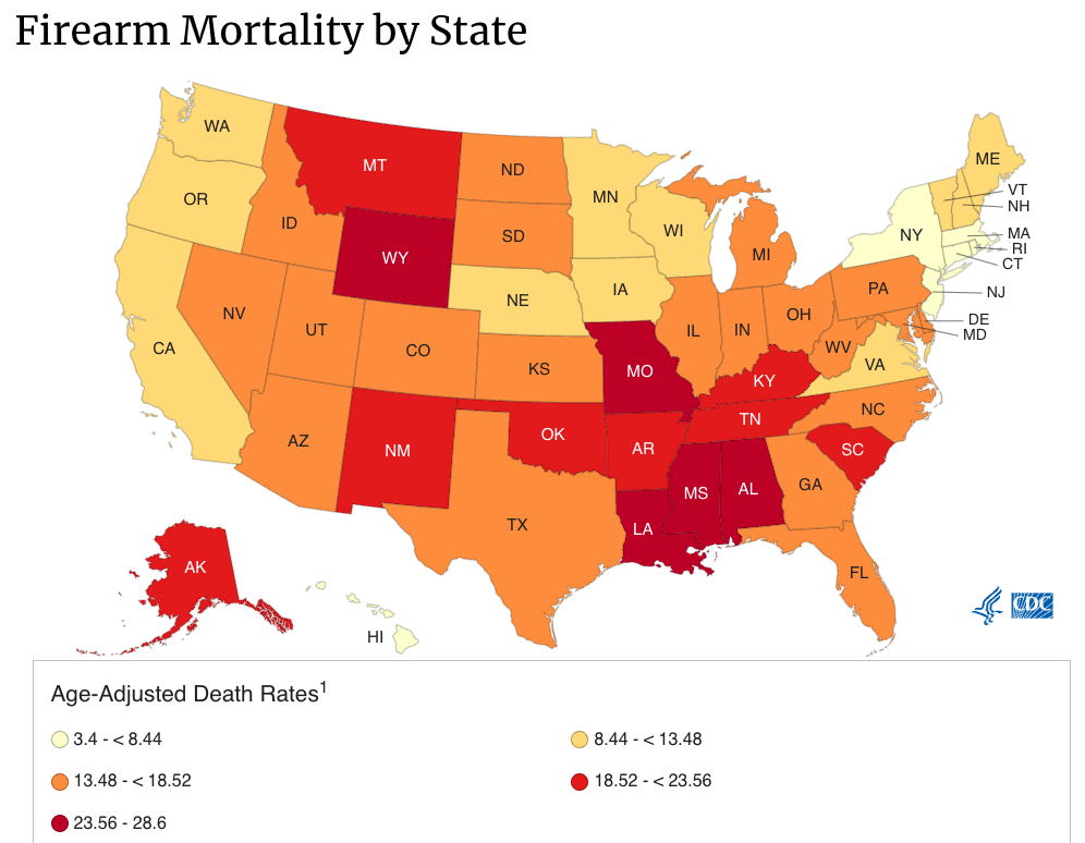 我们再来看看联邦疾控中心(CDC)发布的枪支死亡率数据: