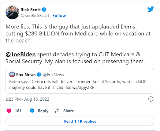 这是误导性的说法。该法律授权医疗保险对处方药的价格进行谈判,从而为联邦政府节省开支。但该法并没有像斯科特(Rick Scott)的推特帖子所暗示的那样削减福利。相反,许多医疗保险参保者将看到他们的福利得到改善。