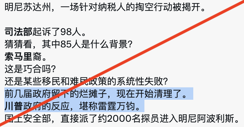 - 明尼苏达州确实存在规模不小的联邦福利欺诈案,但这是旧案,大部分被告已被起诉和定罪,目前仍有一些在审理。此案不是近期新爆出的。