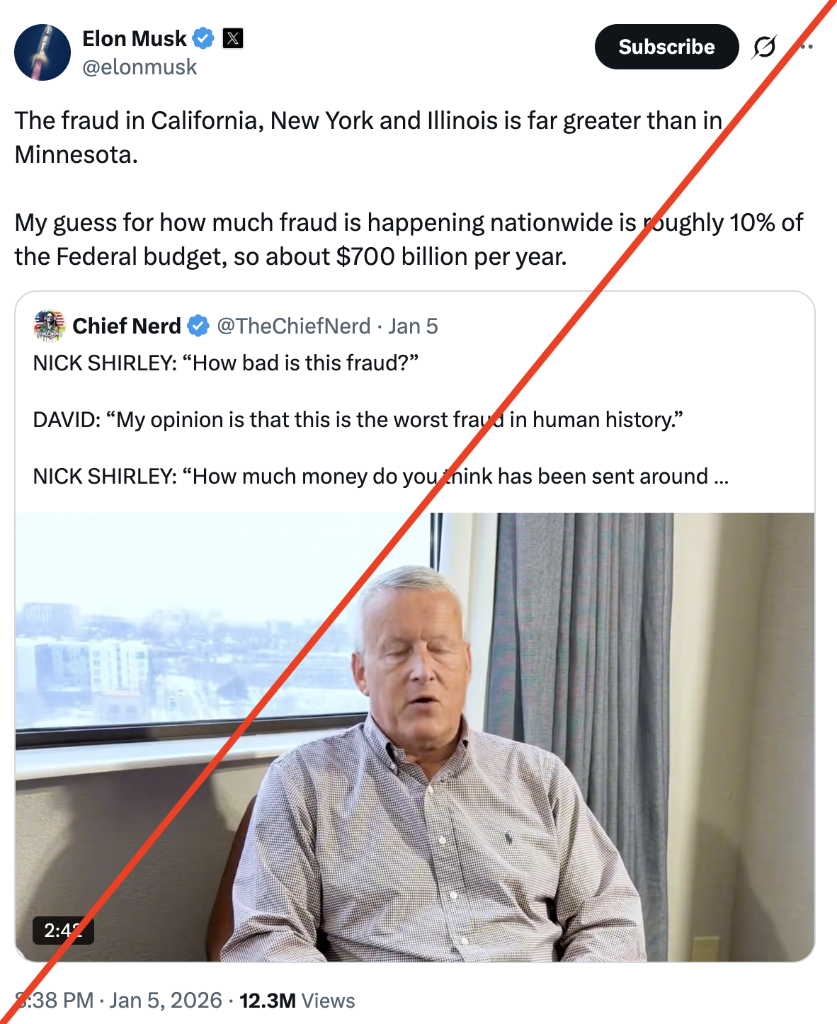 2025年底,这些既有案件被重新包装成“最新曝光”的政绩故事,右翼博主雪利的视频并未提供可核实的托儿欺诈证据,却被用来制造“欺诈仍在大规模发生”的印象,将既有案件与未经查证的指控混为一谈。