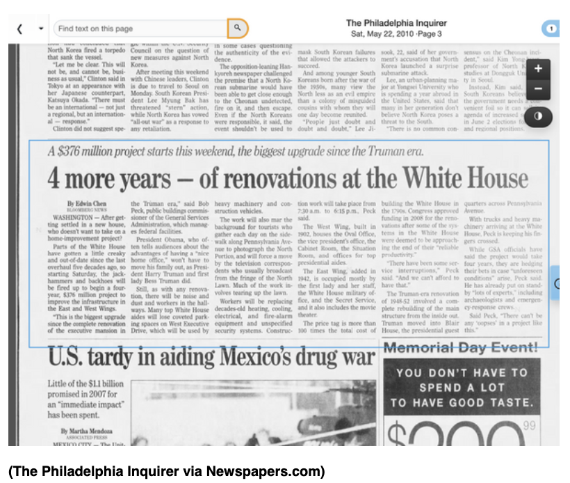 近4亿翻修工程确实存在:小布什总统任内经国会批准