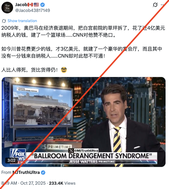 保守派在社交媒体上将奥巴马整体翻修项目与篮球场改造混为一谈,张冠李戴、误导公众。相比之下,川普的宴会厅项目争议在于规模巨大、透明度不足、历史保护问题突出,而非资金来源。私人出资并不意味着可以绕过审批,随意拆毁国家历史建筑。