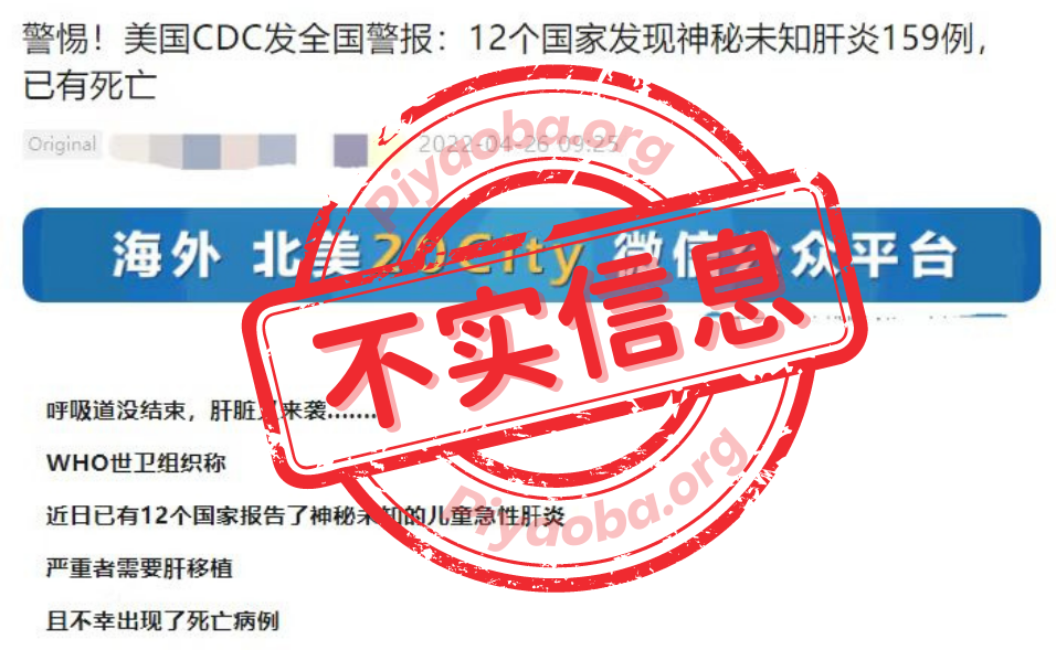 而所谓的CDC“向全国各地的医生发布公共卫生警报,要求医生格外注意,儿童严重肝病的不寻常病例。”是明显的夸大其词。