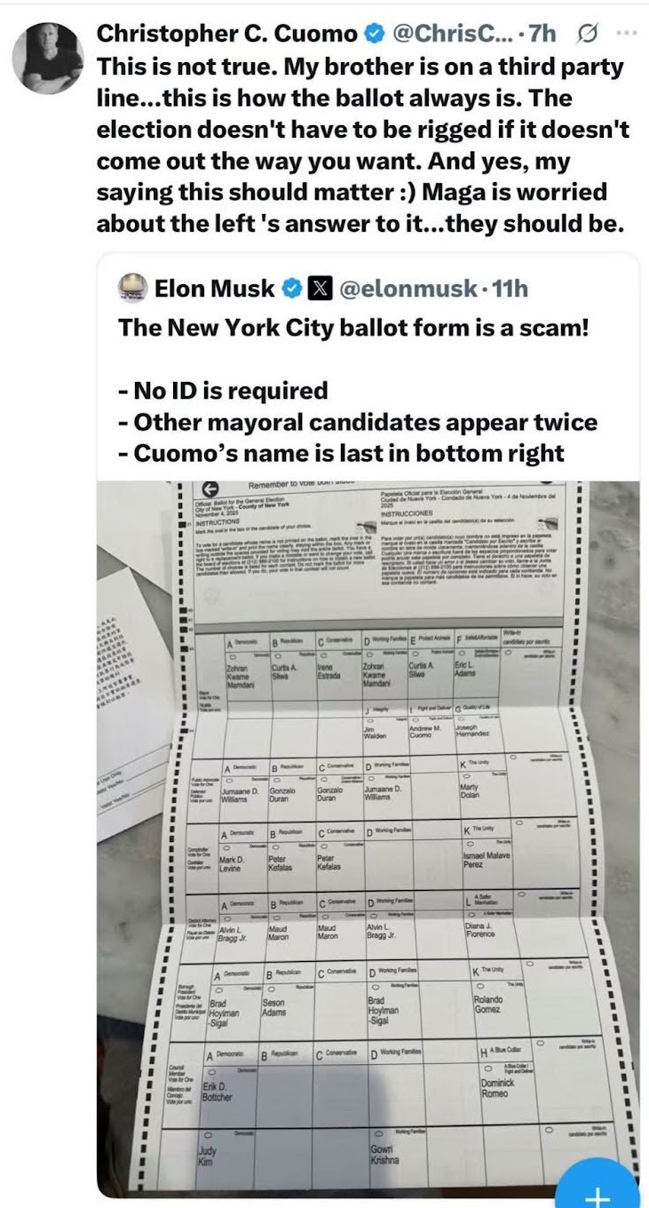 马斯克针对纽约市选票的谣言和科莫兄弟的回应