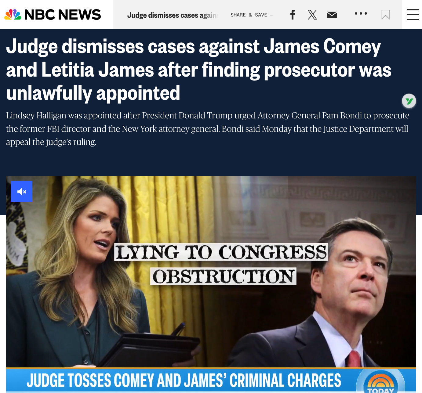 但诺福克市购房案因法官裁定起诉方检察官林赛·哈里根(Lindsey Halligan)的任命程序违法而撤销指控(前联邦调查局局长的案子也同时被撤销),调查陷入停滞。随后两个独立大陪审团均拒绝了对詹姆斯的指控,使川普企图将政敌送上法庭的计划遭遇尴尬挫败。