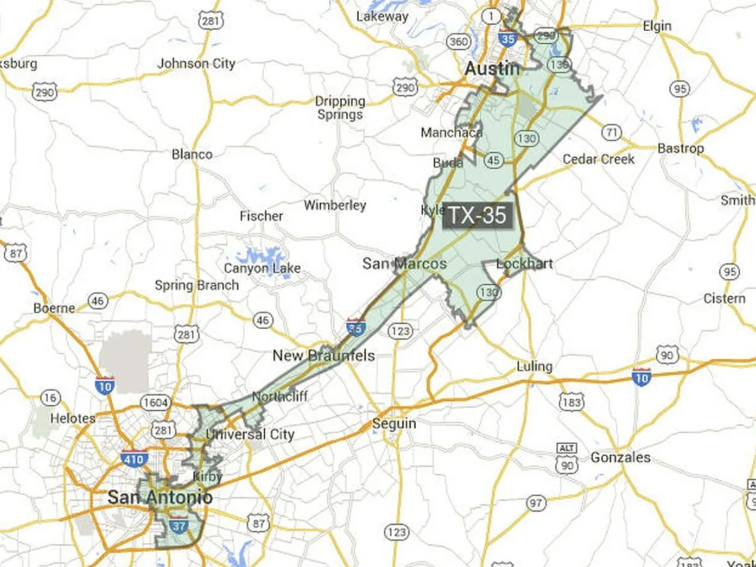 “杰利蝾螈”(gerrymandering) 一词起源于 1812 年,用于描述操纵选区边界以利于特定政党的行为。当年,马萨诸塞州州长埃尔布里奇·杰里批准了一项选区重划方案,催生出一个形似蝾螈的怪异选区,被媒体讽刺为“杰利蝾螈”。如今,德州第35选区成为这一现象的最新注脚。