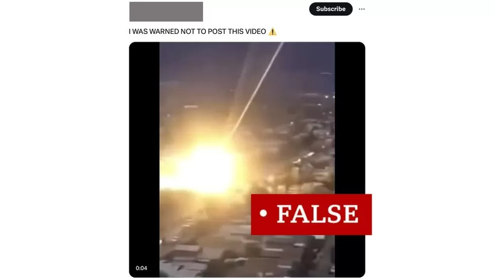 不少帖子展示了一束光从天而降的图像,声称这种光束是由直接能量武器/定向能武器/激光束造成的。而根据美国政府问责局的说法,定向能武器使用以光速发射的集中电磁能量来打击敌人的部队和资产。但问题是,所有流传的图像和视频都被证明是来自其他场景的图片被移花接目。以下是部分流传最广的图像和视频。