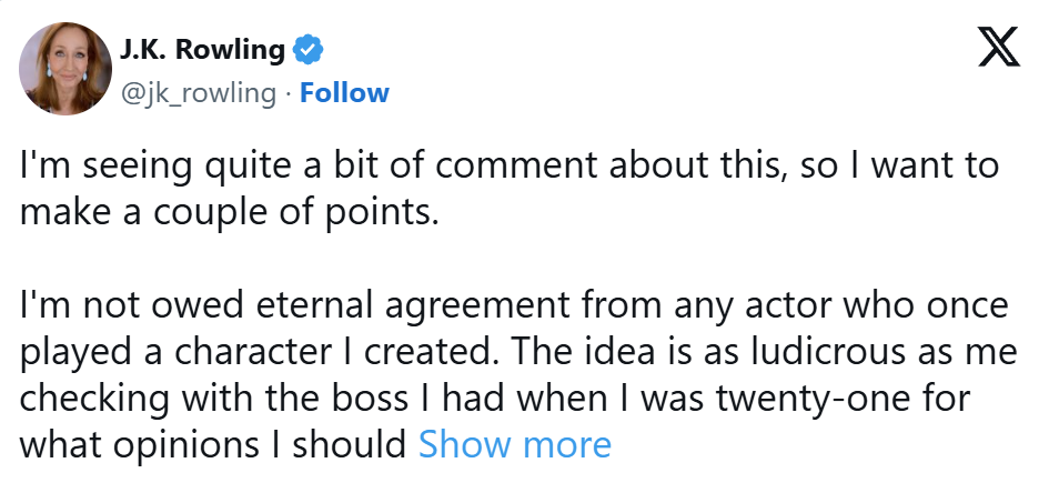 为了进一步证明沃森的“虚伪”,罗琳还曝光了一件私人往事:在2022年沃森发表被视为抨击她的“女巫”言论后,曾私下递来一张纸条,为她当时收到的暴力威胁而“感到抱歉”。罗琳将此举描绘成一种天真且虚伪的姿态,指责沃森在“公开煽风点火”之后,又试图用廉价的私人同情来撇清关系。