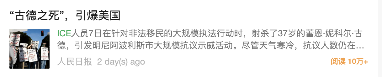 同一事件在不同语言和社区中产生的观感可以截然相反。这提醒我们,所谓的“客观叙事”在任何媒体和平台下都受制于平台机制、文化认知与受众偏好。在就明州事件的中英文报道叙事对比之后,建议读者如果想要得到一件事情准确的多方报道,最好不要轻信中文微信或油管上那些预设立场、煽动情绪的自媒体,最好多方查证,有能力看一眼英文主流媒体的报道是最好的,即便不看英文的,对比多个中文媒体的报道,甚至去小红书上刷一下也是有帮助的。