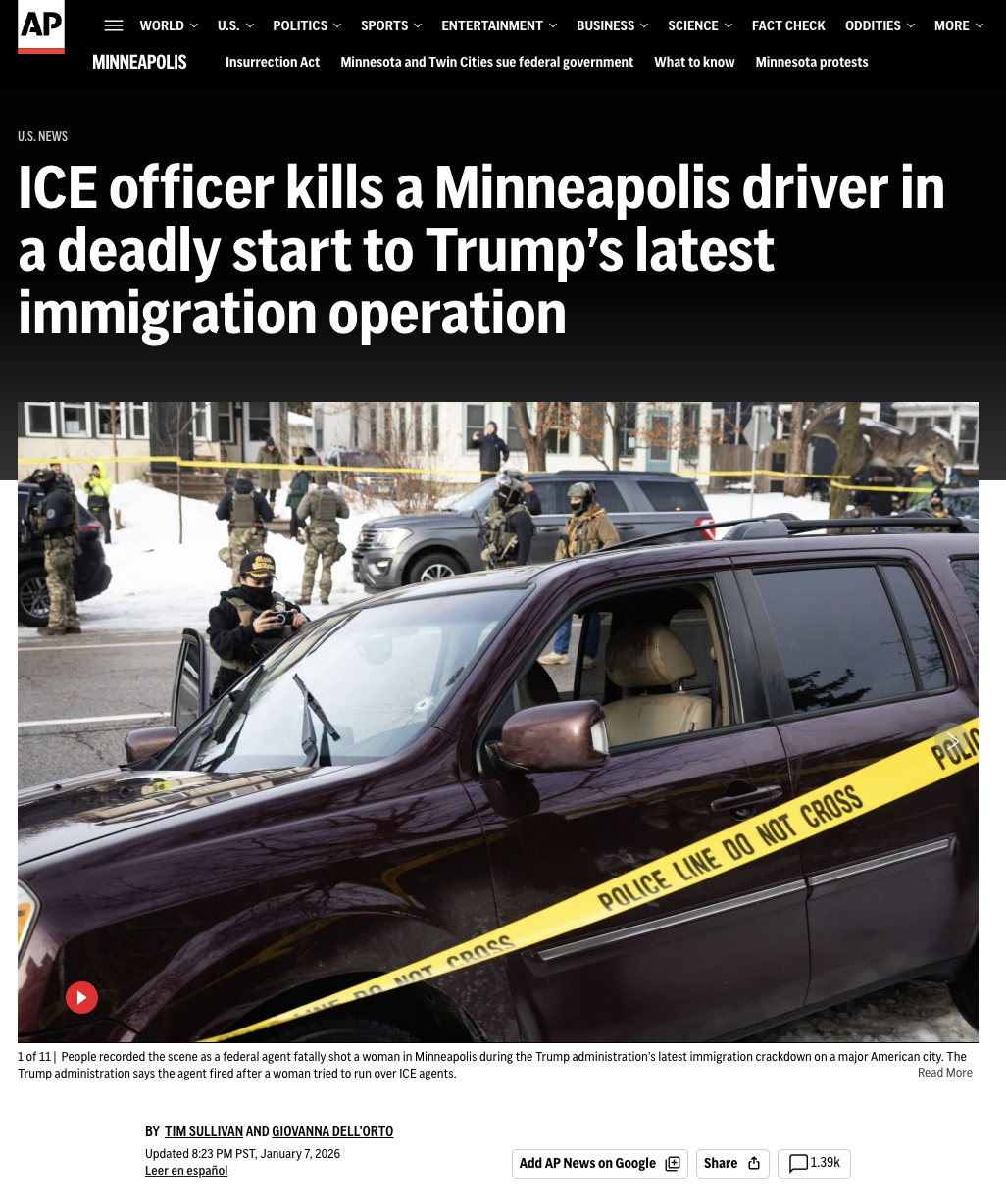 本文将分析1月7日明州ICE枪击事件中英文报道中呈现的叙事差异及背后的文化与政治语境差异,旨在抛砖引玉,为理解中文社区讨论美国时事报道的独特性提供参考。