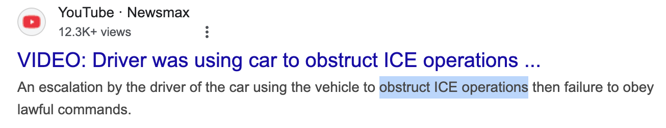 类似的“移花接木”在英文媒体中也并非不存在。极右翼媒体Newsmax突出使用死者伴侣所说的 “Drive, baby, drive(开车,宝贝,开车)”,从而刻意强化了叙事中的挑衅意味。