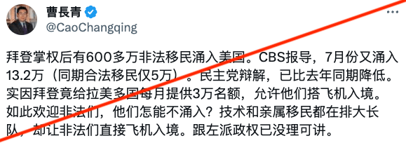 传言:【假】拜登掌权后有600多万无证移民涌入美国,拜登给拉美多个国家每月提供3万名额,允许他们搭飞机入境