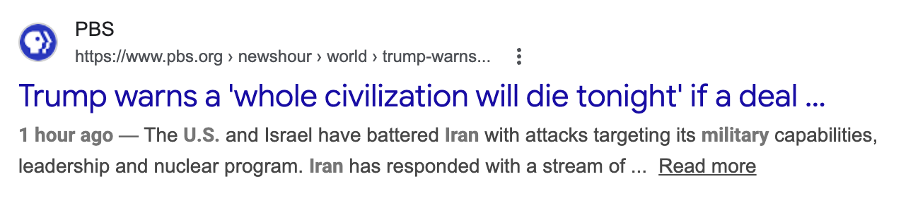 这则标题本身没有事实性错误,但读者可以从中体会到叙事手法带来的情感冲击差异。若追求中立表述,可以改为:《川普警告称若伊朗不遵守要求,“整个文明将消亡”;外交最后期限临近》。相比原标题,这种表述保留了原话,同时提示了外交背景,使读者明白威胁言辞的前提条件,即川普要求伊朗开放霍尔木兹海峡。原标题直接呈现为川普威胁伊朗,更强调紧迫感与冲突性。