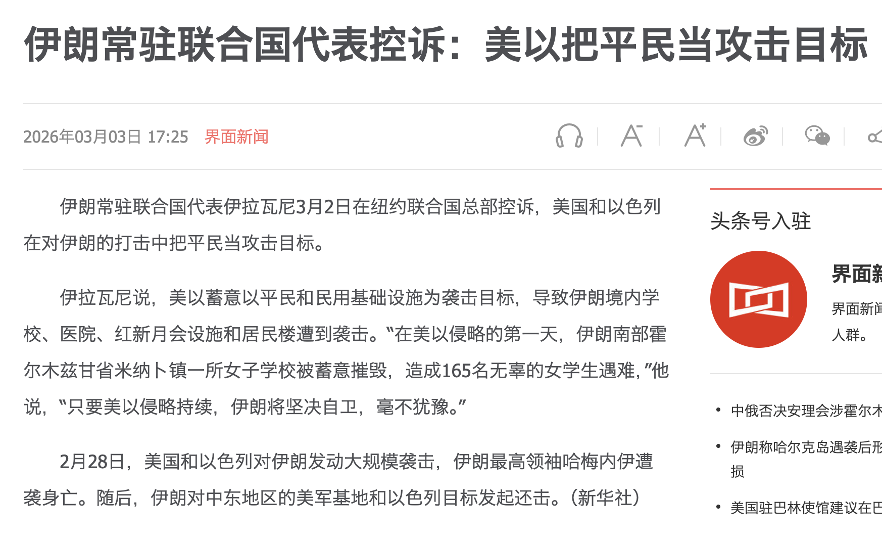 值得注意的是,英文媒体常会明确标注言论来源,将其呈现为引用而非价值判断。例如这条报道中写道“伊朗称美国自说自话”,就清楚表明这是伊朗方面的说法,而非媒体立场,从而保持报道的中立性。