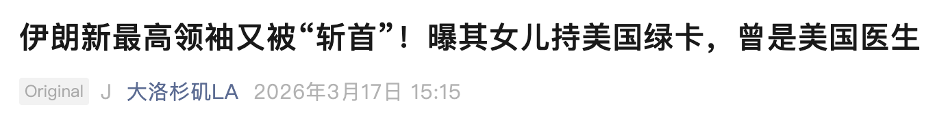 这一条存在事实性错误:拉里贾尼并非伊朗最高领袖。合理怀疑,作者将新上任的最高领袖莫贾塔巴·哈梅内伊与遇袭的安全委员会秘书长拉里贾尼混淆了。不过,这则报道的“劲爆八卦”型叙事,与中文自媒体惯常的风格是一脉相承的。