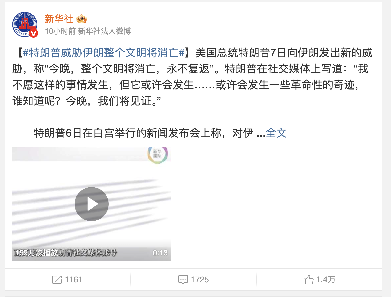 基于这一点,本文在样本选取尽量覆盖不同信息渠道中具有代表性的内容:中文部分以官方媒体为主(并挑选浏览量高的为先),同时纳入部分面向传播力较强的自媒体账号;英文部分则主要选取具备持续报道能力的主流媒体与通讯社(纽约时报、路透社、美联社),并适当纳入立场偏向清晰的媒体(福克斯新闻、纽约邮报)作为对照。此外,文中也将特别标注非美国来源的英文媒体(BBC、卫报、半岛电视台),以观察其是否提供了不同于主流美国叙事的视角。