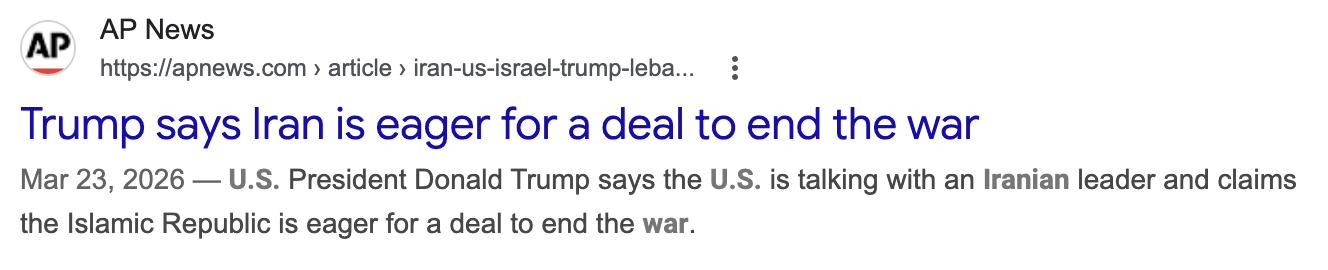 第四周之后(3/23-4/7):聚焦霍尔木兹海峡、谈判似乎在推进、川普多次重申及延后最后期限