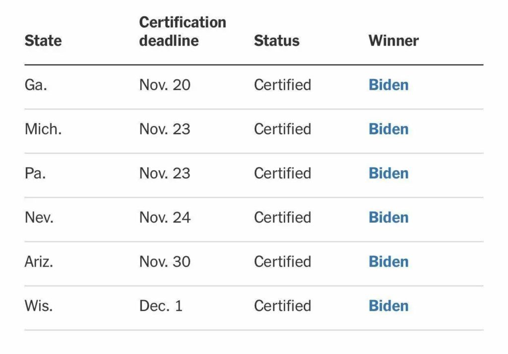 编者按:距离美国大选已经过去整整一个月了,随着六个竞争激烈的摇摆州陆续确认了选举结果,川普败选也越来越清晰了。然而,尽管如此,感恩节前后,又有一组关于大选的谣言在中文社交圈传播,这些谣言比起前段时间的选票系统造假、逝者投票等要更加耸人听闻。今天我们就捉住几条晒出来给大家看一看。