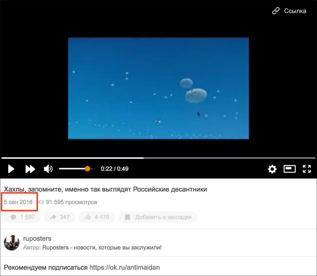 截取视频画面在俄罗斯搜索引擎Yandex检索,可以发现这段伞兵空降的视频至少在2016年就已出现。